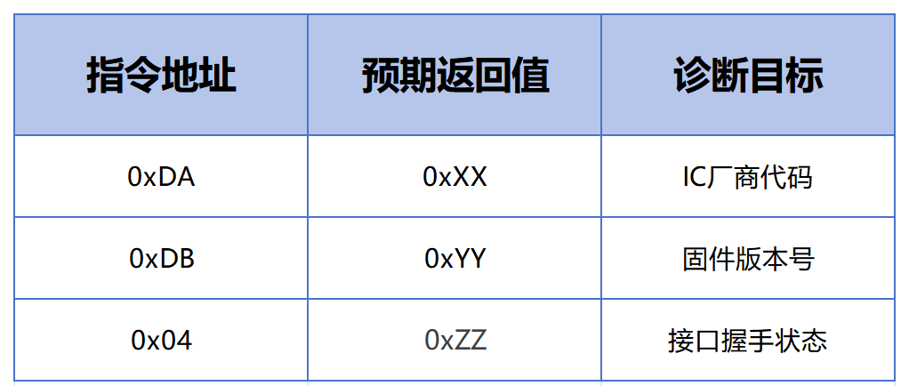 Načelo delovanja: vgrajen motor za samotestiranje gonilnika IC se aktivira ob pravilnem nalaganju inicializacijske kode in generira diagnostične vzorce (barvne vrstice/šahovnice).