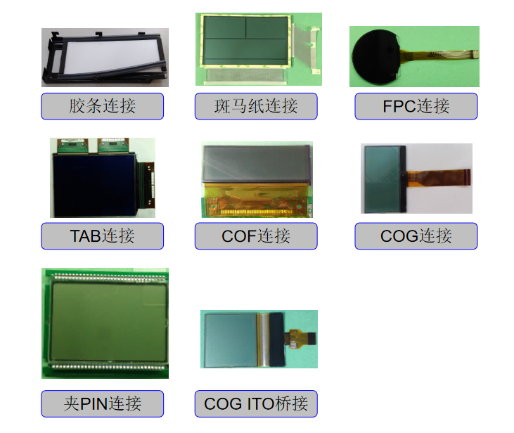 Poleg tega je način povezave enako pomemben. Od tradicionalnih zebrastih trakov/elastomernih povezav do naprednejših povezav FPC, TAB in COF lahko izberemo optimalno rešitev električne povezave, ko prilagodite komponente LCD zaslona glede na vaše zahteve glede prenosa signala in prostorske postavitve.