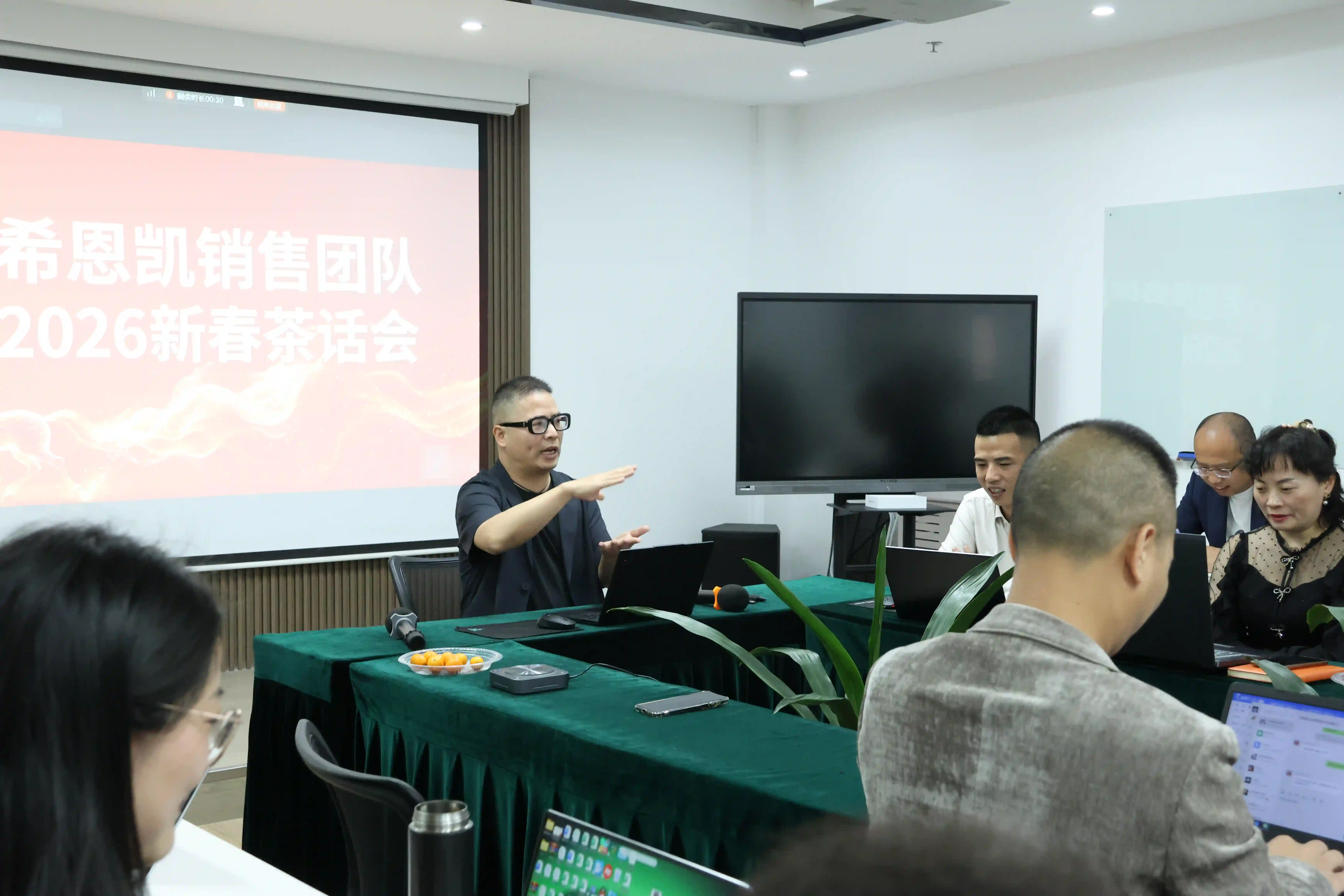 Predsednik je v celoti potrdil dosežke oddelka prodaje v letu 2025 in se odzval na pričakovanja, ki jih je izpostavila vsaka skupina posebej. S črpanjem modrosti iz Tao Te Chinga je razjasnil način prodaje in osebne rasti, pri čemer je poudaril pomen postavljanja ciljev in študija metod, samopreseganja in inovativnosti. Delil je tudi prodajne filozofije glede zunanje podobe, medsebojnih odnosov in čustvene povezanosti. Poleg tega je predstavil politiko podjetja o prednostnih storitvah za ključne stranke, finančni podpori in zagotavljanju projektov ter vse spodbudil k krepitvi zaupanja, proaktivnemu raziskovanju potreb strank in povezovanju osebne rasti z razvojem podjetja. Svoj nagovor je sklenil s spodbudo ekipi, naj sprejme izzive leta 2026 z novim slogom in novimi pričakovanji. Naslednja seja vprašanj in odgovorov je dodatno razjasnila smer in dvignila moralo ekipe.